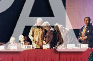 Galeria Con Nelson Mandela en la mesa principal de la XII Cumbre de los Países No Alineados. Durban, Sudáfrica, Septiembre 2, 1998 Leer más » julio 30, 2025